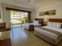 El Hotel SUNSOL Isla Caribe está ubicado en el pueblo del Tirano a sólo 25 minutos del Centro Comercial Sambil y a 5 minutos de Playa el Agua. Cuenta con 452 habitaciones distribuidas en 3 ambientes: tropical, cascada y real. El ambiente tropical le ofrece en sus espacios la posibilidad de disfrutar de un ambiente acogedor con acabados naturales, enmarcado en verdes jardines, y con un divertido programa de actividades en su piscina central, diseñado para niños y adultos. El ambiente cascada es ideal para el descanso, en su relajante piscina con jacuzzi usted podrá disfrutar de la calma que solo el aire marino puede ofrecerle; y por último el real, con espacios modernos y cómodos, distribuidos alrededor de su hermosa piscina y verdes jardines. En sus instalaciones usted podrá disfrutar de 3 restaurantes estilo buffet, además de 7 bares distribuidos por el hotel incluso en la playa. Entre otras facilidades que le ofrece este hotel podrá encontrar: club de niños, parque infantil, sala de juegos ( video juegos, mesas de hockey),teatro, wifi en el lobby principal, discoteca, salón de convenciones, servicios médico salon de belleza, heladería, tiendas, servicios de masajes y lavanderías, bodegón,gimnasio y mucho más. Animación diurna y nocturna, Show para niños y adultos. Sus habitaciones cuentan con aire acondicionado, tv por cable, secador de cabello, mini nevera y caja de seguridad. Conózcalo y disfrute al máximo de sus instalaciones.