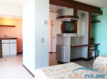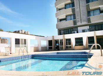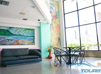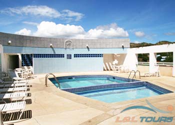 Vistoso hotel de ciudad ubicado en la capital comercial de la isla de Margarita, le ofrece la comodidad que usted necesita si viene de compras, por negocio o con su familia. Este céntrico hotel tiene para usted dos tipos de habitaciones: Familiar con 1 Cama Matrimonial y 1 cama individual en una habitación y 1 sofá cama para 2 personas ubicado en el estar, 2 baños, nevera, aire acondicionado, teléfono, secador de pelo, caja de seguridad, bañera o jacuzzi; y Ejecutiva con 2 camas individuales en una habitación y un sofá cama para 2 personas ubicado en el estar, 2 baños, nevera, aire acondicionado, teléfono, secador de pelo, caja de seguridad, bañera o jacuzzi. Dentro de las instalaciones de este hotel usted podrá disfrutar de restaurante – bar, piscina, solarium, estacionamiento y servicio de taxi.