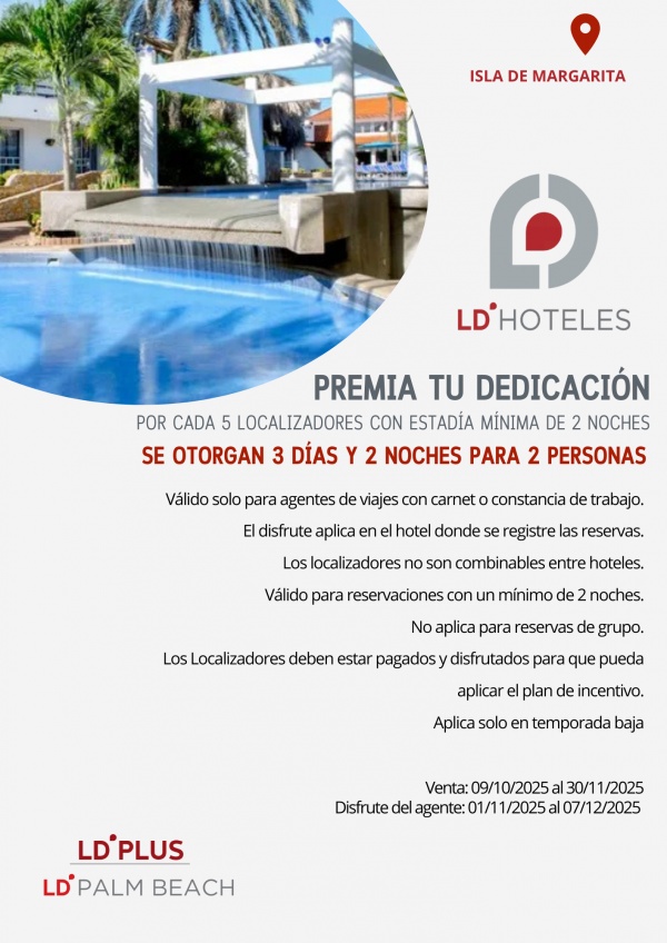 - Esta promoción es válida solo para agentes de viajes identificados con carnet o constancia de trabajo.