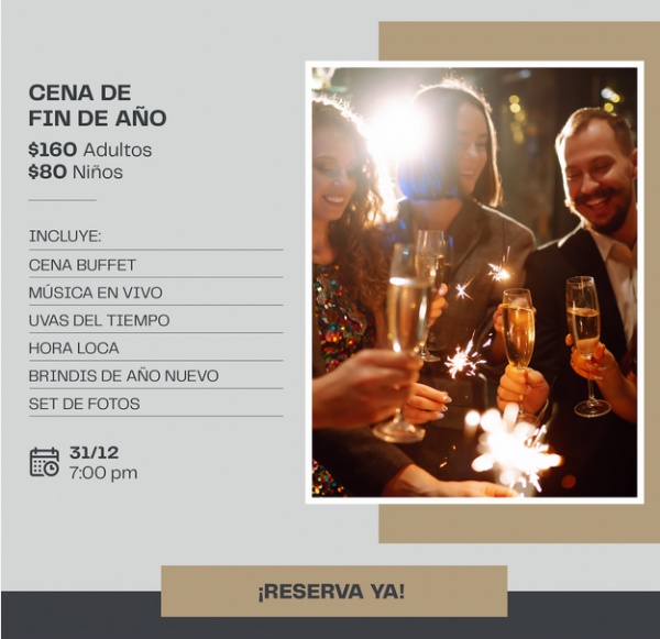 - Tarifa de preventa por persona para cena de Fin de año para adultos $160.