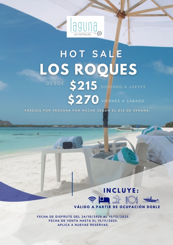 ¡¡HOT SALE LOS ROQUES!! NO TE PIERDAS DE UN PLAN EXCLUSIVO DESDE $215 POR PERSONA POR NOCHE EN POSADA LAGUNA BY LD