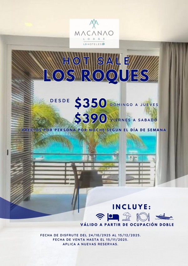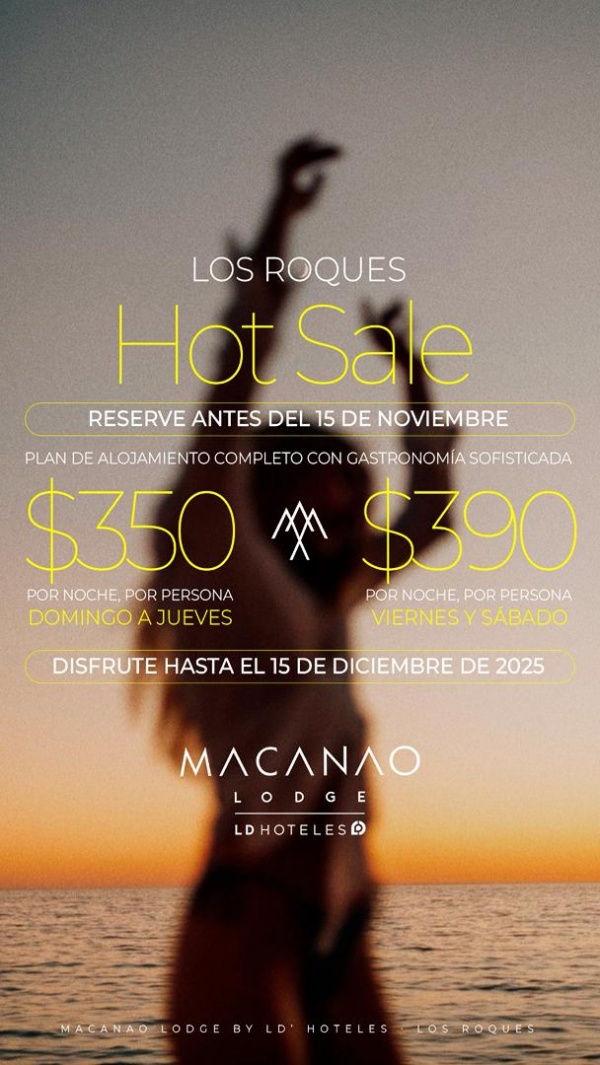 ¡¡HOT SALE LOS ROQUES!! NO TE PIERDAS DE UN PLAN EXCLUSIVO DESDE $350 POR PERSONA POR NOCHE EN POSADA MACANAO LODGE BY LD