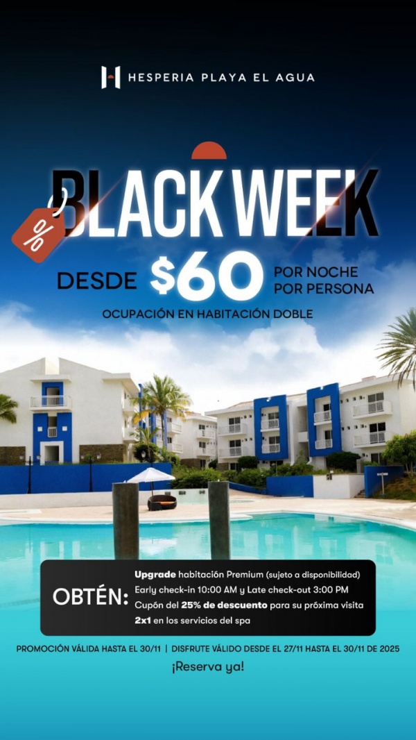 ¡¡BLACK WEEK!! POR TIEMPO LIMITADO DISFRUTA DEL PLAN TODO INCLUIDO Y OTRAS SORPRESAS EN HESPERIA PLAYA EL AGUA EN LA ISLA DE MARGARITA