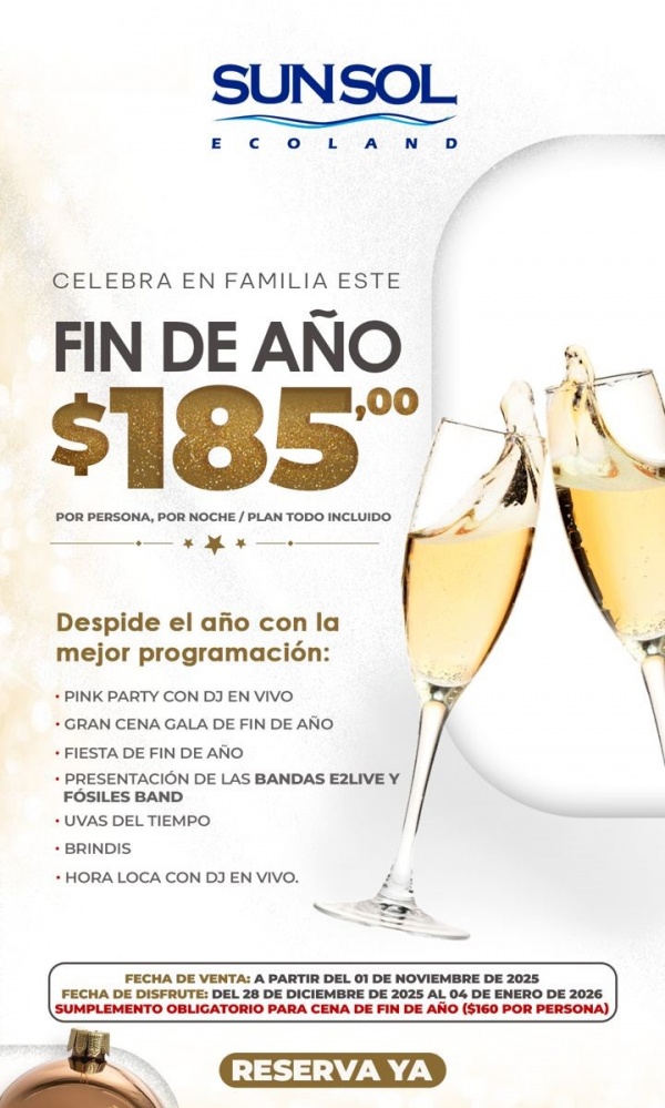 - Tarifa promocional fin de año en ocupación Doble $185 por persona por noche.