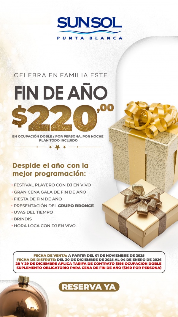 ¡¡CELEBRA EN FAMILIA ESTE FIN DE AÑO!! DESDE $220 POR PERSONA POR NOCHE EN HOTEL SUNSOL PUNTA BLANCA EN LA ISLA DE COCHE