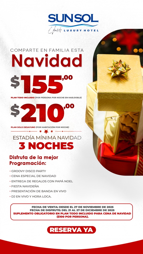 ¡¡NAVIDAD INOLVIDABLE!! DISFRUTE EN FAMILIA DESDE $155 POR PERSONA POR NOCHE EN PLAN TODO INCLUIDO EN HOTEL SUNSOL UNIK ISLA DE MARGARITA