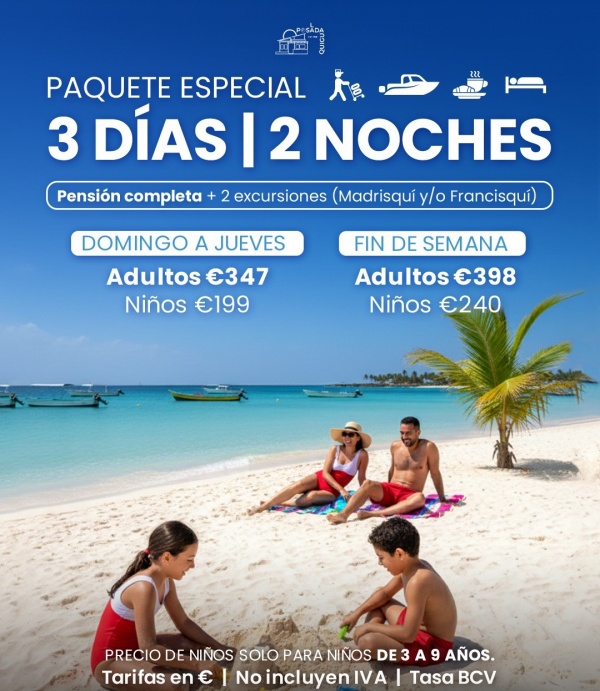 PAQUETE ESPECIAL 3 DIAS Y 2 NOCHES DESDE 347 POR PERSONA DE DOMINGO A JUEVES EN POSADA LA QUIGUA LOS ROQUES