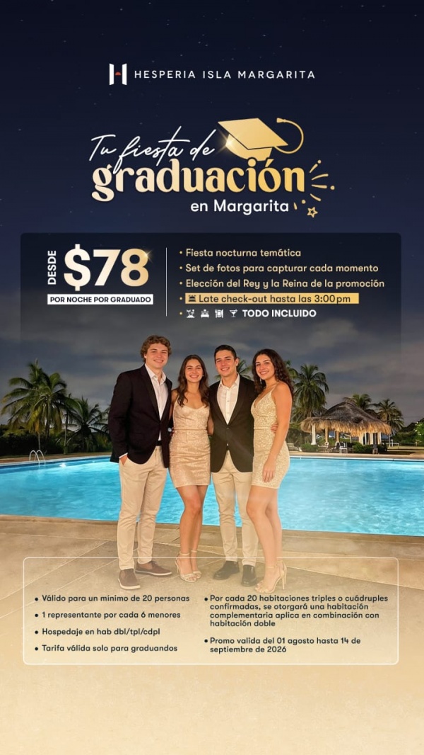¡¡PROMO GRANDUADOS!! PLANES ESPECIALES SOLO PARA ESTUDIANTES EN HOTEL HESPERIA ISLA MARGARITA
