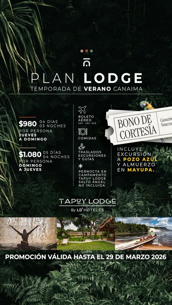 - No incluye excursión Full Day o Pernocta al Salto Angel.