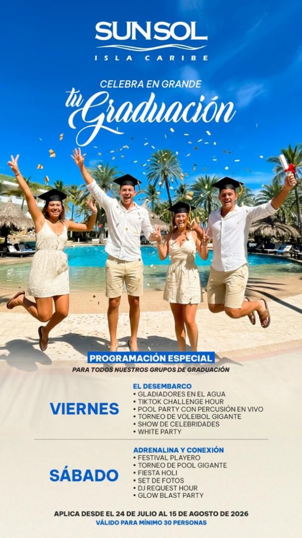 ¡¡GRADUANDOS!! DISFRUTA LA PROGRAMACION ESPECIAL PARA ESTUDIANTES DE SUNSOL ISLA CARIBE EN LA ISLA DE MARGARITA