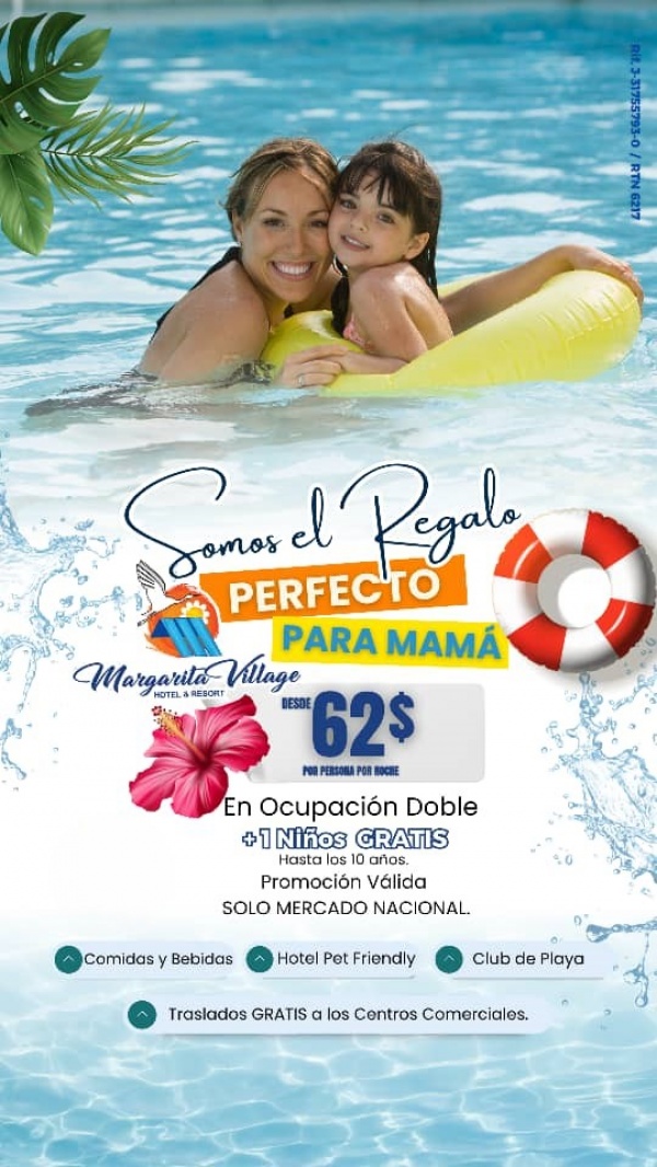 ¡¡PROMOCIÓN DÍA DE LA MADRE!! DISFRUTA DESDE 62$ POR PERSONA POR NOCHE + 1 NIÑO GRATIS EN HOTEL MARGARITA VILLAGE ISLA DE MARGARITA